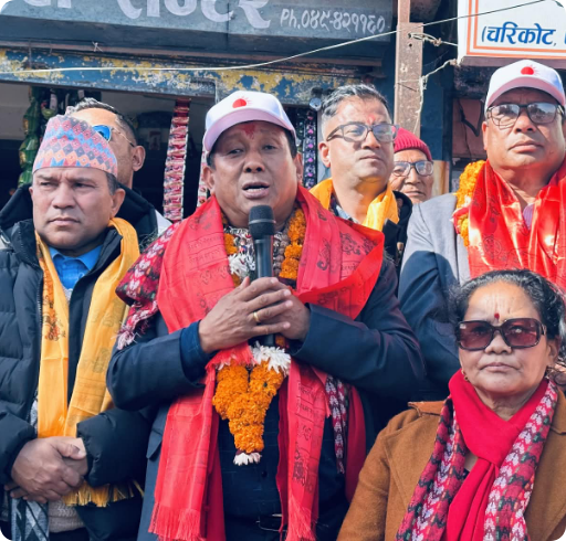 म कर्ममा विश्वास गर्छु । त्यसैले मैले राजनीतिमार्फत जीविकोपार्जन होइन, जीविकोपार्जनका लागि उत्पादन र व्यवसाय गर्दै राजनीतिलाई सेवाको रुपमा अघि बढाएको छु । आफ्नो गर्विलो विगत, स्वच्छ सामाजिक छविको जगमा उभिएर दोलखाको दिगो विकासका लागि गर्नुपर्ने बाँकी कामहरु पुरा गर्ने नयाँ जोश, उर्जा र संकल्पका साथ यही फागुन २१ गते हुने प्रतिनिधिसभा सदस्य निर्वाचनमा नेकपा एमालेबाट प्रत्यक्ष तर्फ उम्मेदवार बनेको छु । यस अघि झैँ तपाइँहरुले अमुल्य मत प्रदान गरि बिजयी गराउनुहुनेछ भन्ने कुरामा म पुर्ण विश्वस्त छु ।